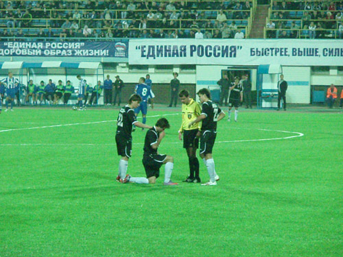 По факту получалось, что проблемы множеству автолюбителей создал простой календарный матч зоны «Урал-Поволжье» второго дивизиона. Правда, первый после двухлетнего перерыва, вызванного разрухой на главной арене области. Летом 2008-го Профессиональная футбольная лига запретила проводить официальные матчи на газоне, испорченном за зиму ледовой площадкой. Команда переехала на «Темп», а область занялась переговорами о выкупе арены у Приволжской железной дороги. Стороны ударили по рукам лишь в феврале нынешнего года, сговорившись на сумме чуть меньше 240 миллионов рублей. Хозяйство региону досталось запущенное – полный ремонт арены может занять порядка трех лет. Начать решили с замены дискредитировавшего себя естественного газона на синтетический. Работы велись с июня под контролем «Единой России» – куда же без нее?