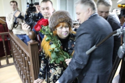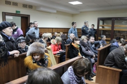 Однако сделать это судебные приставы так и не смогли, поскольку крикунами оказались пожилые женщины, пришедшие в зал на костылях, которые наотрез отказались вставать и покидать зал. Стоит отметить, что одна из них пришла на процесс с цветами, которые пыталась передать Лысенко.