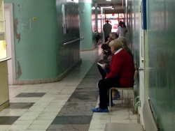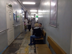 Внутри учреждение оказалось очень маленьким и тесным. Очереди на рентген ожидало человек 20, но сидячих мест хватало не всем. Людям с переломами ног, приходилось стоять, облокотившись на стену или костыли.