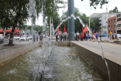 Сегодня в Саратове в сквере на улице Рахова состоялся митинг КПРФ под названием «Прекратить геноцид саратовцев». Коммунисты выстроились полукругом с лозунгами: «нет капитальной обдираловки!», «Нет увольнениям, сокращениям зарплат!», «Радаев! Проезд за 18 рублей – билет до «Майдана!». В мероприятии приняли участие первый секретарь горкома КПРФ Саратова Александр Анидалов, депутат Саратовской городской думы Геннадий Турунтаев.