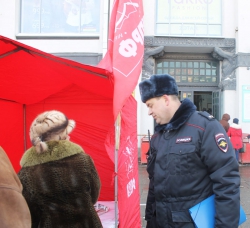 Действительно, никаких работ на площади не велось. На «встрече с депутатом» присутствовало несколько десятков горожан, а также много полицейских, которые фиксировали все происходящее на видеокамеру. Некоторое время стражей порядка с техникой было даже больше, чем представителей СМИ. К каждому депутату был прикреплен свой «оператор», который всюду следовал за ним, что сильно раздражало коммунистов. Младшие однопартийцы загораживали руками камеры, закрывали своими телами коллег. Молодой коммунист Николай Бондаренко несколько раз вставал прямо перед полицейским и в упор снимал его на камеру своего телефона. Горожане также возмущались действиями полиции, но стражи порядка хранили упорное молчание.