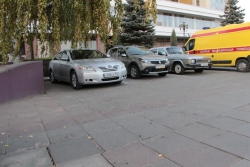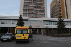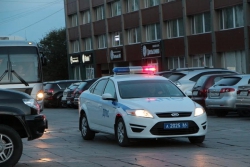 Возле гостиницы дежурит экипаж ДПС и «скорая помощь».