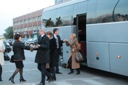 Тем временем, подъехавшие на автобусе к гостинице участники совещания сразу отправились к входу в ресторан.
