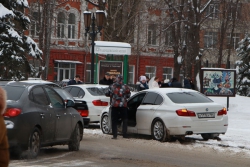 Иномарка вкупе с остальными машинами подъехала к Радищевскому музею, где молодожены проводили фотосессию, и припарковалась на тротуаре.