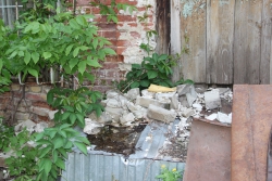 В кухне, по словам людей, течет крыша, и вода стекает по стенам, разрушая их и деревянный пол. Он уже местами сгнил.
