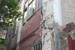 Он обратил внимание корреспондента, что два подъезда строения, выходящие на улицу Пушкина, накренились и «ползут» в разные стороны. Из-за этого в стенах появляются трещины, а в комнатах поднимаются «горкой» полы и обрушаются потолки.