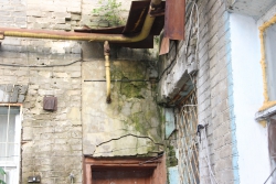 «Здание может в любой день рухнуть, видите, как оно просело? А вот такие трещины, чуть ли не с кулак, в стенах внутри и снаружи. В этом году состояние стало совсем тревожным, раньше дом так не рушился и не «садился», – сетует старшая по дому.