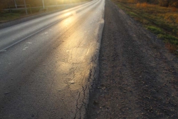 Вот только в первозданном виде проезжая часть простояла совсем не долго. На отремонтированной за 43 миллиона рублей дороге уже прошлой осенью появились первые признаки разрушения. Возникли они по краям дороги, где асфальт местами густо покрылся трещинами. В текущем году во время весеннего мониторинга «Дорожного контроля» подобных проблемных мест стало значительно больше, также начали появляться глубокие просадки, в них началось разрушение, а количество трещин по краю дороги значительно увеличилось. Справедливости ради отметим, что ситуацию пытаются исправить ямочным ремонтом, разрушающиеся места перекладывали картами, а трещины обрабатывали мастикой. Однако данные мероприятия проводятся лишь для возвращения свежеотремонтированной дороге нормативного состояния, остановить начавшиеся разрушения они не смогут.