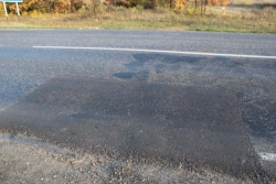 На прошлой неделе мы решили снова проинспектировать дорогу и вынуждены констатировать, что количество проблемных мест на трассе ожидаемо увеличилось. На 6 километрах отремонтированной проезжей части наш сотрудник насчитал 21 новую карту и 5 участков с многочисленными трещинами, нуждающихся в замене. Размеры латок варьируются от метра до пяти в длину и примерно на метр-полтора в ширину.