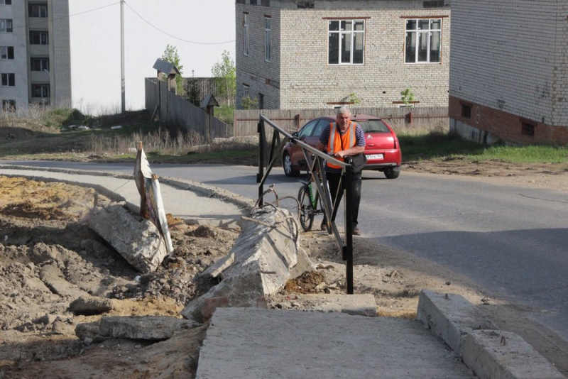 Сама пешеходная дорожка, назовем ее так, не заасфальтирована и декорирована бетонными блоками. Но главное – по своей ширине до боли напоминает те самые тротуары на Исаева – то есть для одного человека с сумками в руках. Идущий на встречу такому прохожему волей неволей оказывается на дороге.