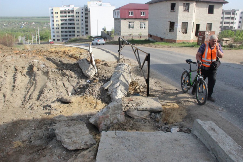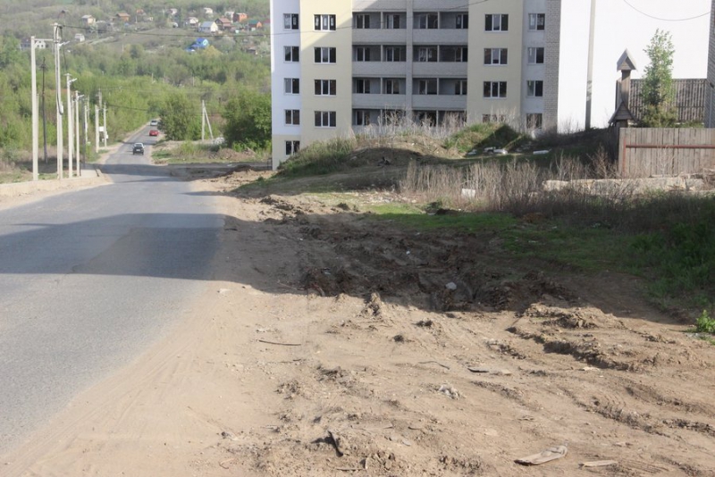 Но особенно стоит отметить улицу, соединяющую Братьев Никитиных и Исаева. Несмотря на то, что на ней наблюдается только коттеджная застройка, она представляет собой жалкое зрелище. Это, по сути, сильно разбитая грунтовка, покрытая ямами, рытвинами и колдобинами. Забавно, что при этом она символично называется «Автомобильная». Так вот какая, оказывается, дорога для автомобилей в Саратове! Пройдя ее до конца и преодолев небольшую ямку, мы окажемся на той самой «улице имени мэра». Причем в той части, где узкий тротуар сменяет рытвина в грунтовке.