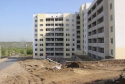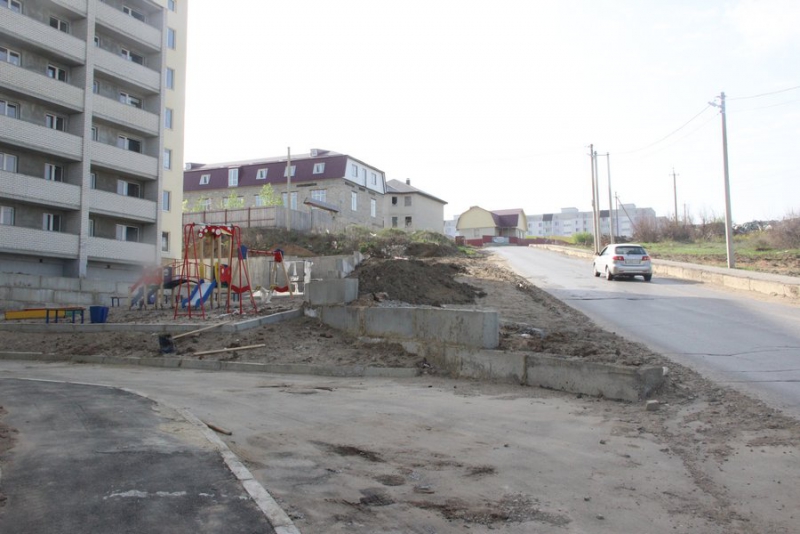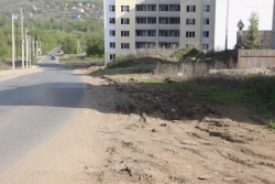 Примечательна и новостройка, шестиэтажный дом, у которого пока что нет номера. Судя по всему, в нем еще нет жильцов. Однако уже можно увидеть, что дом находится в нескольких метрах от дороги, как и детская площадка возле него, что, разумеется, очень опасно. Площадка никак не огорожена. Не дай Бог, какой-нибудь малыш побежит за мячиком, укатившимся на дорогу.