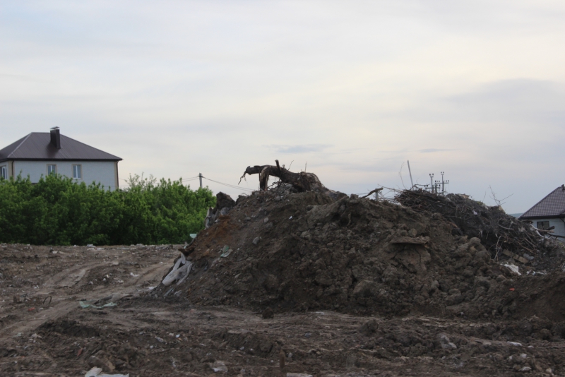 Несмотря на железное ограждение, на котором написано «Свалка мусора запрещена» (позже надпись исчезла), создается ощущение, что в гору отходов нет-нет, да и выкинет кто-нибудь что-то ненужное. Свалка разрослась на сотни метров, в ней можно найти сухие сучья деревьев, бой плитки и кирпичей, мешки с мелким мусором.