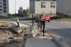 К этому дому и стоящей неподалеку пятиэтажке на улице Воскресенской ведет такая же не заасфальтированная дорога, которая знакома читателю по микрорайонам «Березки» и «Цветочный». То есть, проще говоря, голые бетонные плиты.