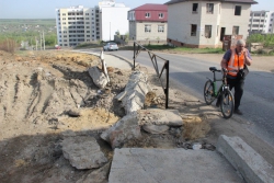 Не легче приходится и автомобилистам. На протяжении дороги, которая идет большей частью под уклон, периодически встречаются глубокие ямы и выбоины, которые мощно сотрясают подвеску при попадании в них.